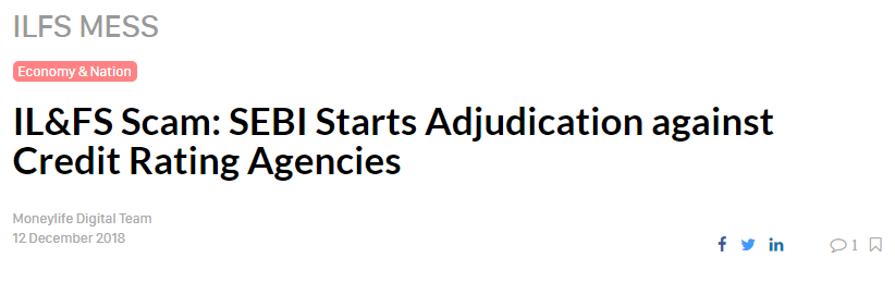 SEBI started an investigation in Dec-18 into impropriety on the part of the credit rating agencies that rated the IL&FS debt.