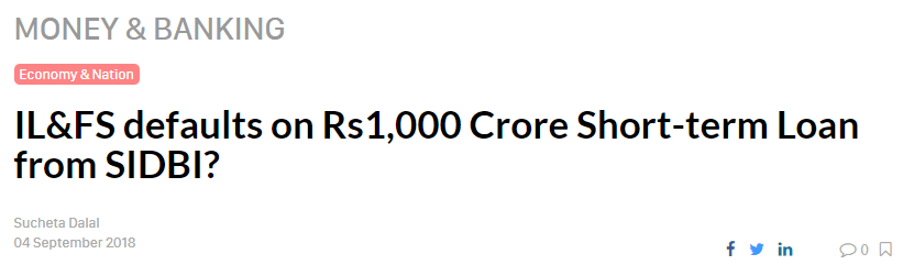 This was a surprise for most market players as just a few days before this default, the bonds of IL&FS were AAA rated. The role of the credit rating agencies came under doubt.